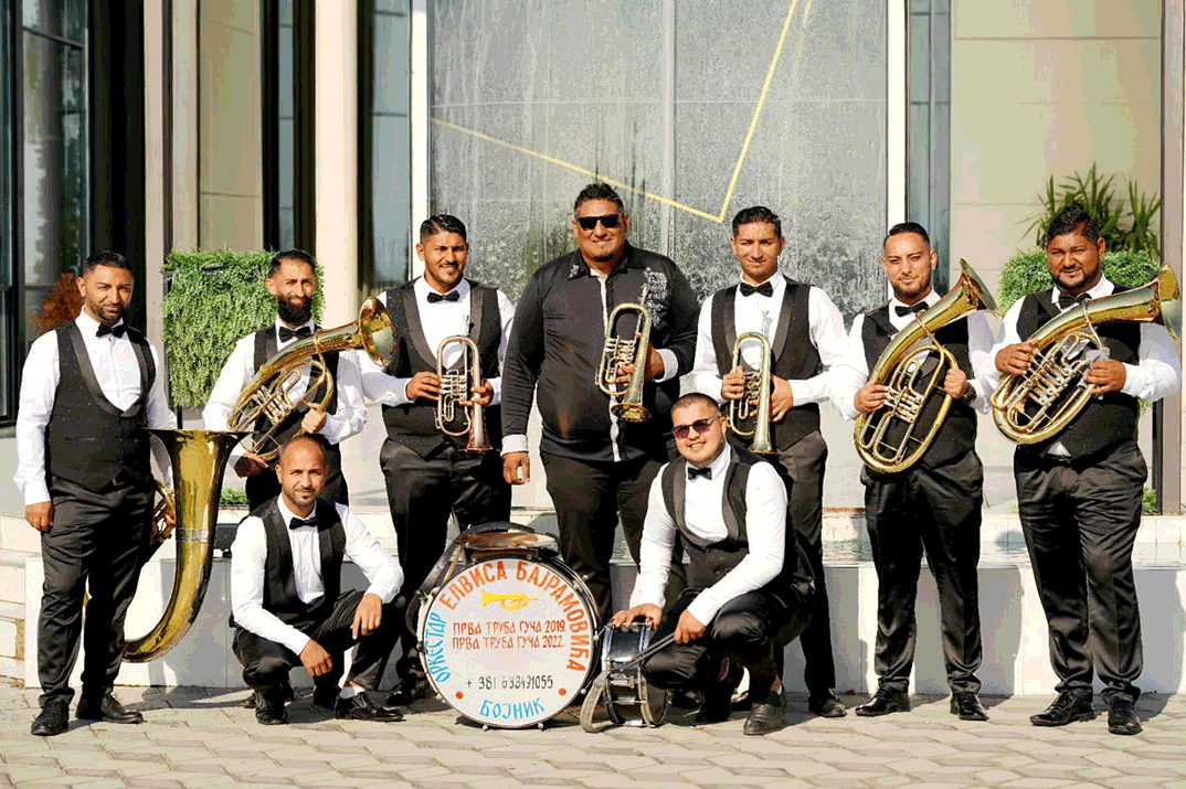 Sacrés Trompette d’Or à trois reprises au légendaire festival de Guča, en 2019, 2022 et 2025, Elvis Bajramovic Orkestar est devenu une des fanfares les plus réputées d’Ex-Yougoslavie. Originaire de Bojnik, ville du sud de la Serbie, l’Orkestar perpétue avec brio leur tradition familiale autour de la trompette.
