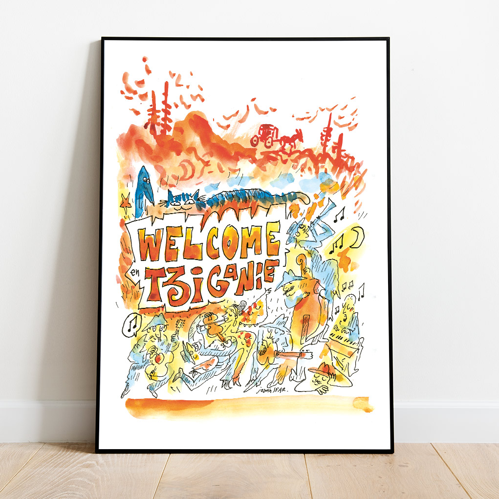 Affiche inédite de Joann Sfar, célèbre auteur de bande dessinée (« Le Chat du Rabbin », « Klezmer »…), spéciale Welcome in Tziganie.